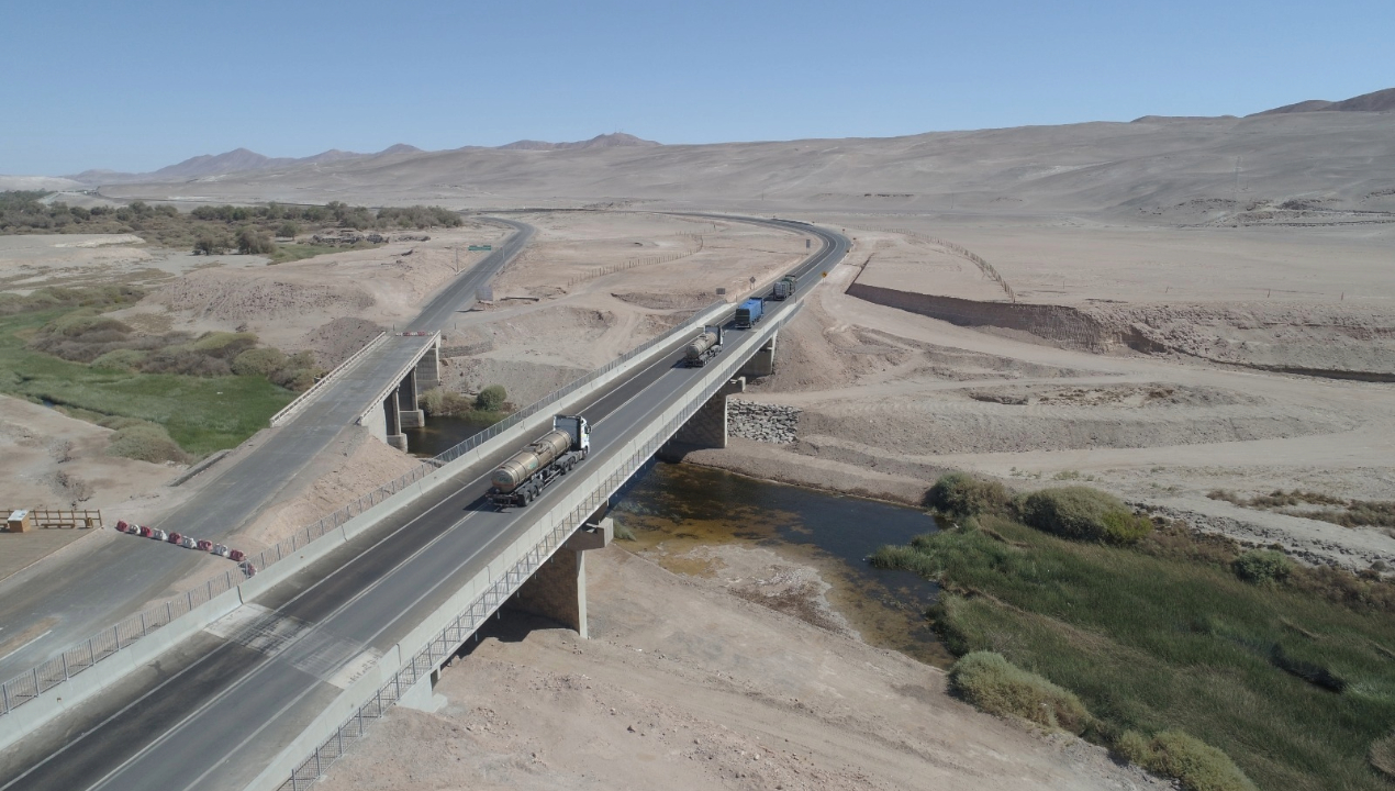 Esta nueva infraestructura incrementa las condiciones de seguridad vial y el confort de este tramo de la Ruta 5, gracias al mejoramiento de la carpeta de rodadura, la disminución de la pendiente (rasante) en los accesos al nuevo puente y el refuerzo de los elementos de seguridad vial en el tramo comprendido entre los kilómetros 1.631,700 km y 1.634,20. Km de la Ruta 5 Norte.