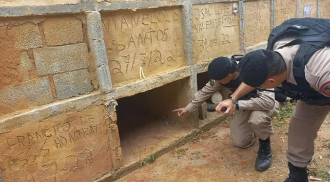El suceso fue advertido la tarde del miércoles cuando un grupo de sepultureros advirtieron manchas de sangre y cemento fresco en unos de los nichos.